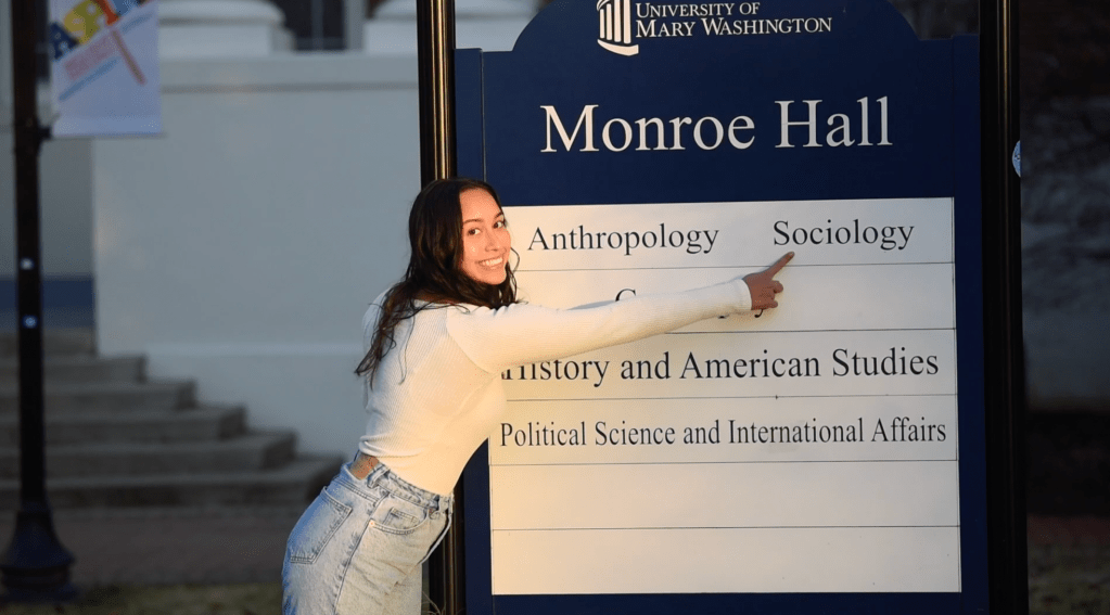 “I first applied to Mary Wash because they came to my school.. at the time they were promoting the College of Education,” Andrea is a Sociology major who will graduate next spring with her masters in Elementary Education, as a part of UMW’s now-discontinued 5-year Education program. During our conversation, Andrea reflects on her time in the freshman dorm Marshall (“Deep down the hill”), and how it led her to meet her best friend and current roommate, Hana Bussell. That semester-and-a-half of freshman year before the pandemic, Andrea remembers making the effort of getting up Marshall hill to have dinner with her friends and initially finding a sense of community, “Maybe I didn’t feel as connected to UMW yet, but I was having people that made me feel connected.”