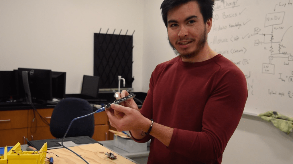 In the Spring of 2022, Kevin went to his academic advisor Dr. Varun Makhija, and asked about internship opportunities for the summer. Dr. Makhija recommended UMW’s Summer Science Institute, a 10-week summer research program. Kevin then contacted Dr. Desmond Villabla, a physics professor at UMW who was mentoring students for the 2022 SSI. “It is a huge accomplishment to have a physical object in front of you that you created from scratch,” Kevin motions to his solar array, the prototype for his research on solar powered phone charging stations for the homeless population. During his research, he learned to program with Arduino, 3D print, and solder.
